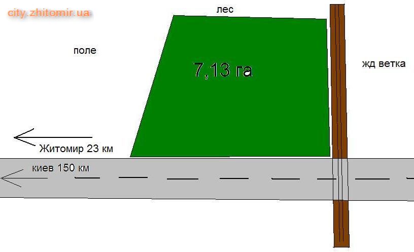 Земельный участок 7,13 га 23 км от Житомира